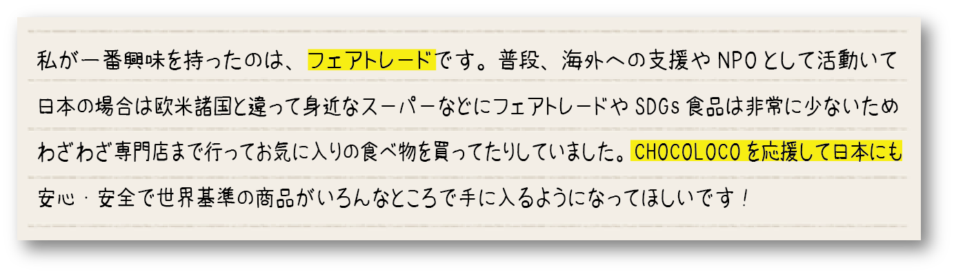 いかがでしたでしょうか?ここまでCHOCOLOCO JAPANがどんな思い出この商品を日本で流行らせていきたいかをお話させていただきました。最後になりますが、この活動が
