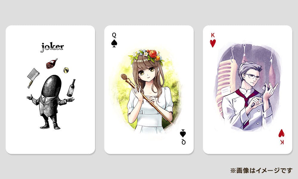・『おとぎのファルス』特製トランプ→1,J,Q,K,JOKERに九目先生描き下ろしイラストを使用した特製のトランプをご用意いたします。