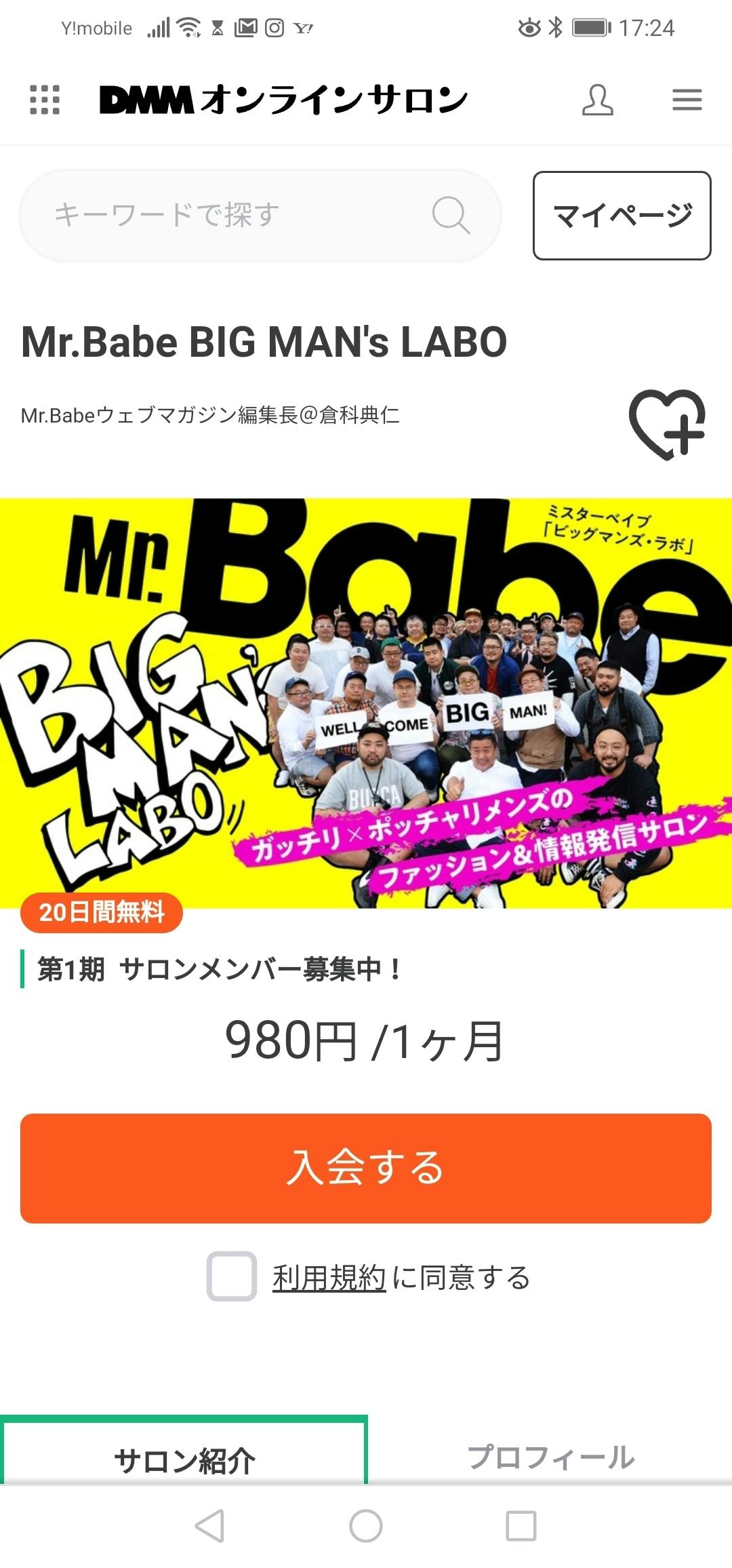 また『Mr.Babe BIG MAN’sLABO』は、体重80kg以上限定の会員制コミュニティーサロンで、日頃体型のことで様々な悩みを抱えているポッチャリ会員たちが自ら立ち上がり、日本人のポッチャリ&ガッチリ体型に合ったお洒落なオーバーサイズのファッションアイテム情報の収集をはじめ、アパレルブランドとのコラボレーションで大きいサイズのお洒落アイテム開発への試みやグルメ、趣味、恋愛、結婚等々、楽しいライフスタイルを過ごすための情報を常にクローズドのサロン内で会員の皆さんと情報共有し、ポッチャリにとって有益な情報を「デブ目線」を通して全国のBIG MAN(ポッチャリ体型の方)のために発信する「デブのためのエンタメ総合研究所」として「ファッション・デブ」&「イケてるデブ」を作る!を目指し、ポッチャリ・エンターテイナーのための会員制オンラインサロン」を運営しております。