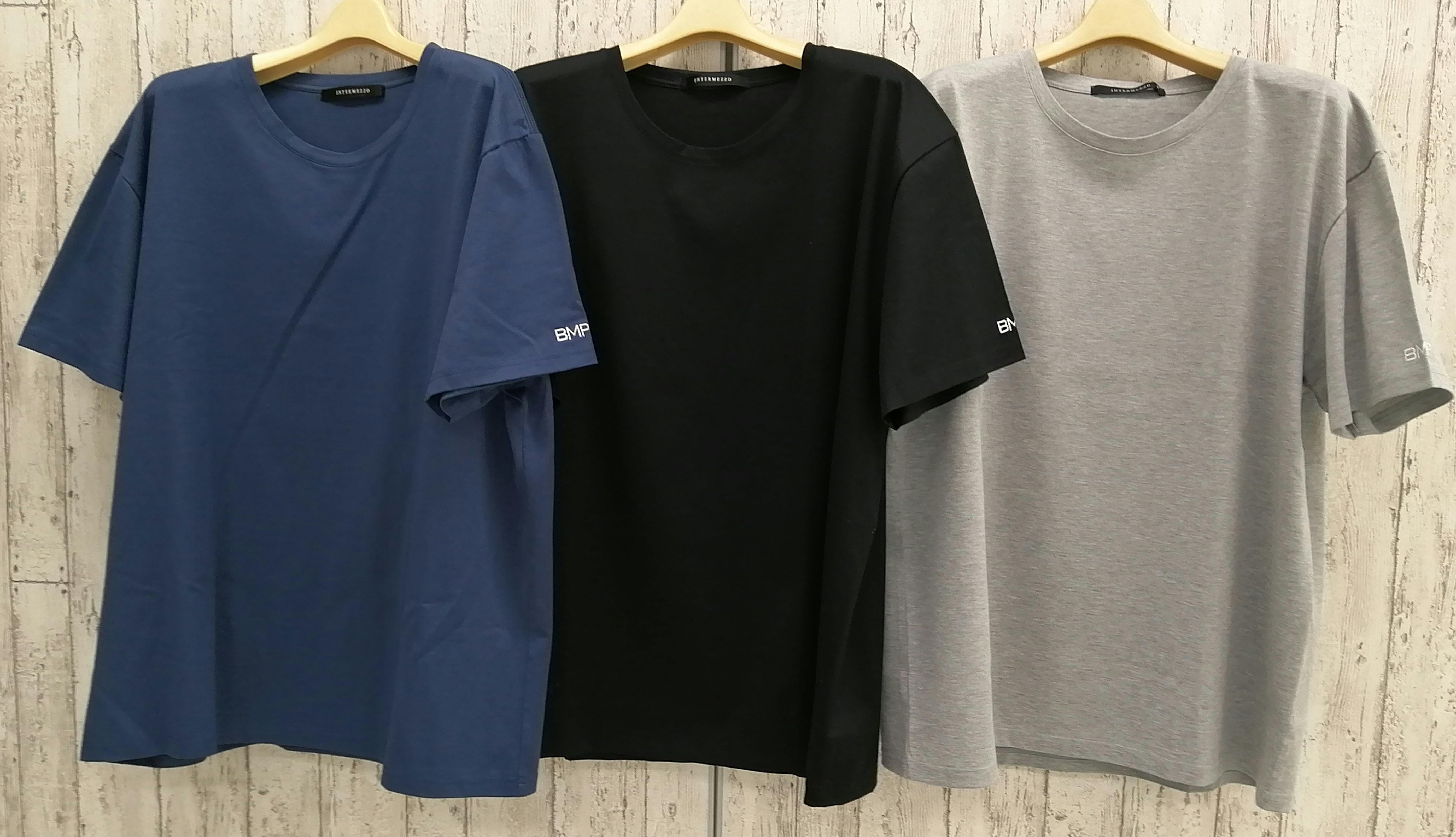 BMP(ビックマンプロジェクト)の刺繍を袖口に付けた、汗ジミがしにくく、着回しやすい無地Tシャツです。