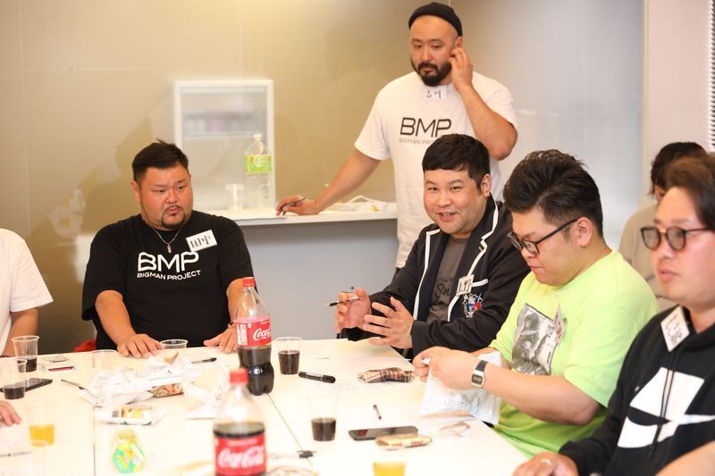 早速、私達Mr.Babe運営スタッフはレナウン本社に伺い、太った方が求める商品イメージをお伝えしたり、逆にレナウン担当者の方が「直接皆さんの声を聞きたい」ということでポッチャリ体型限定のオンラインサロンのオフ会に来ていただき、ポチャメンの生の声を聞いていただきながら、商品開発のイメージを具体的なものにしていきました。