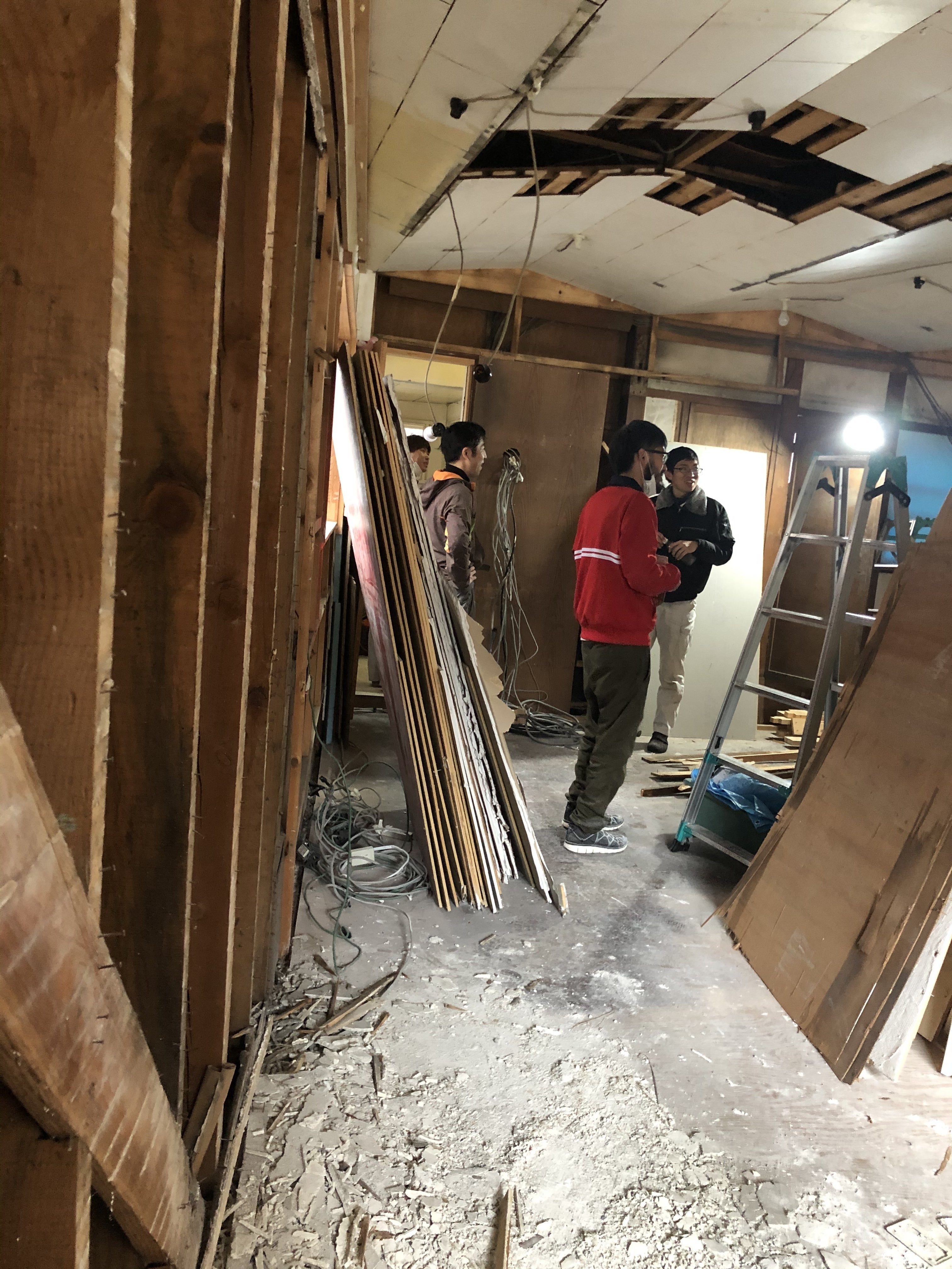 現在、新たな空間にすべく自分たちの手で解体作業を進めています。