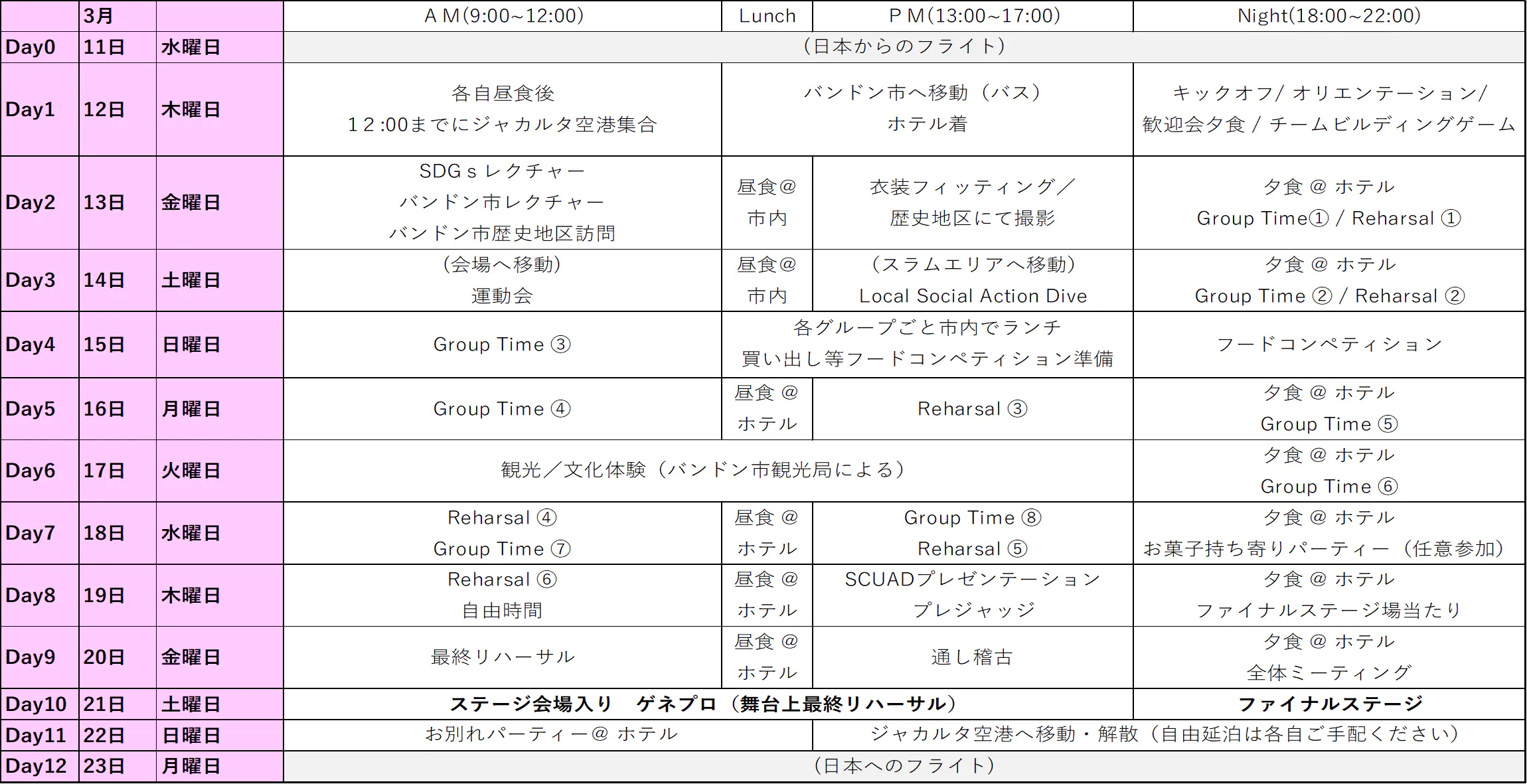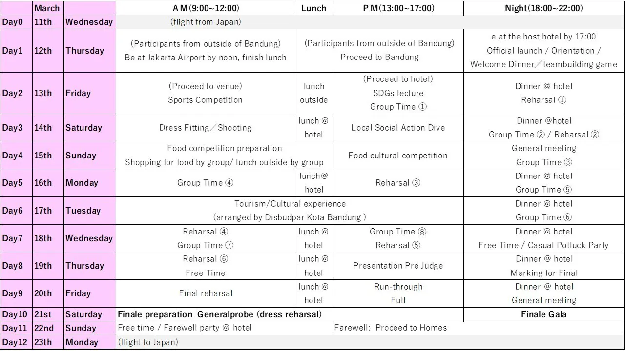 最終日のFinal Stageはただのプレゼン発表の場ではなく現地の人気芸能人によるパフォーマンスや参加者による文化ファッションショーなどを盛り込んだエンターテインメントステージでとして開催し、会場動員は若者中心に1500人規模を想定しています。