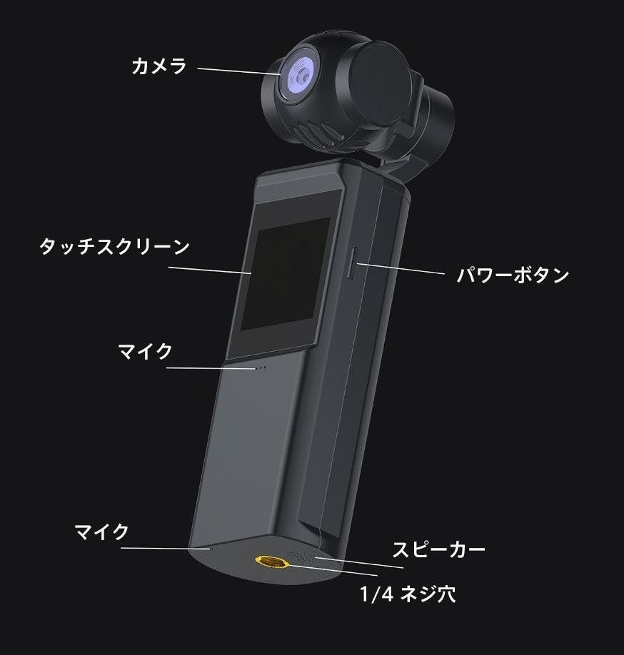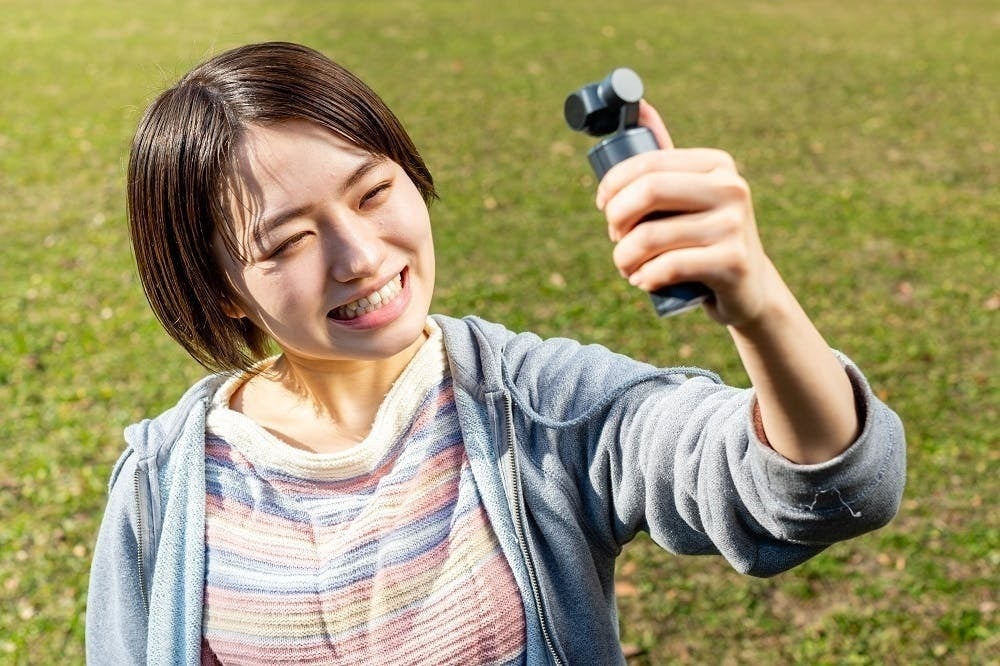 さらに電源のオンオフ、録画のスタートやストップ、さらに「シンバル」の設定までカメラを握ったまま指先一つで操作可能です。だから自撮りも楽々。