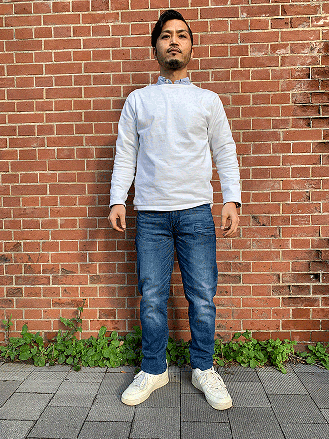 モデル:171cm / 63kg / Lサイズ着用・・・ジーンズはMサイズ着用