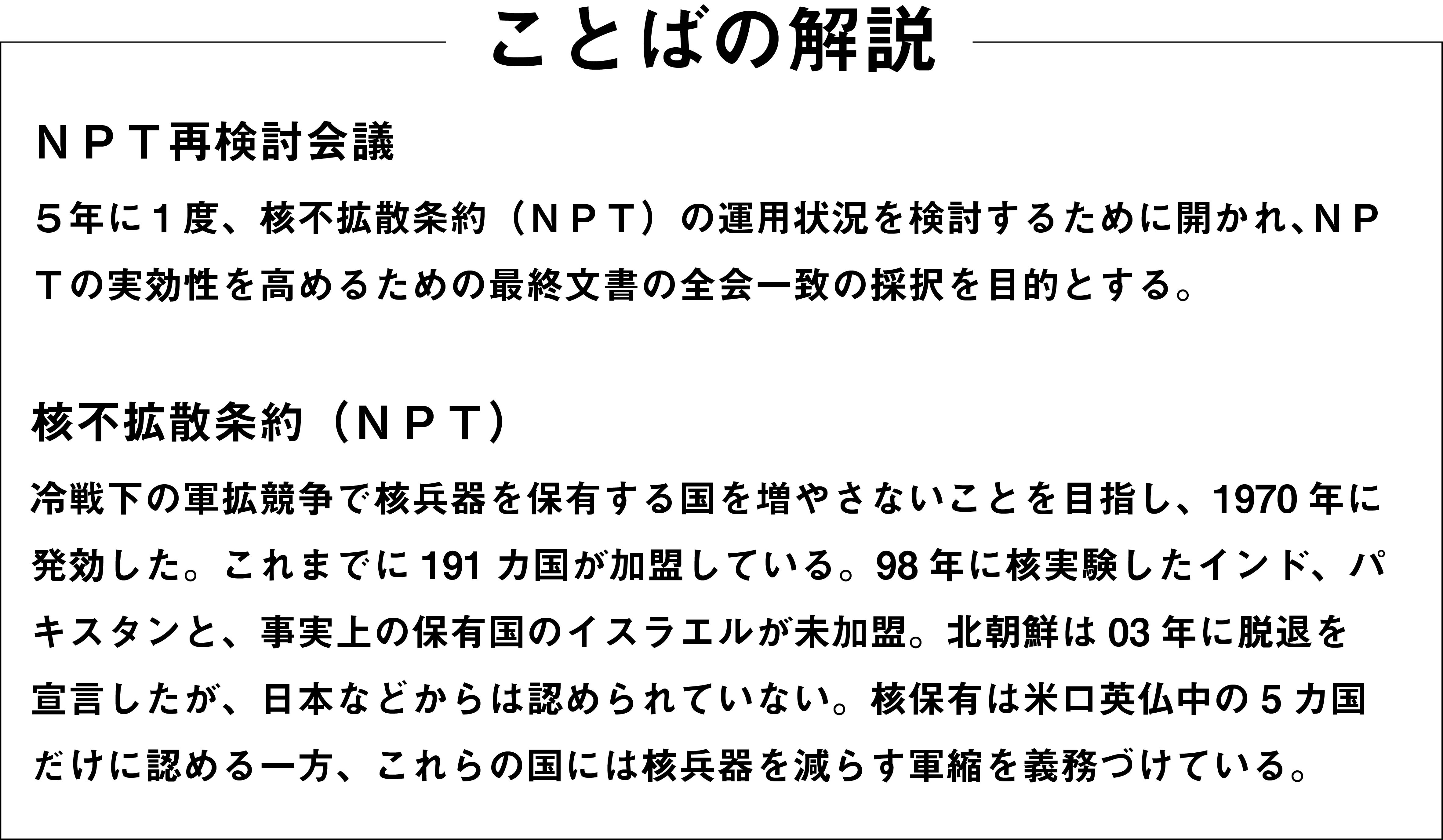 今年の4月から5月にかけて米ニューヨーク国連本部で核不拡散条約(NPT)再検討会議が開催されます。