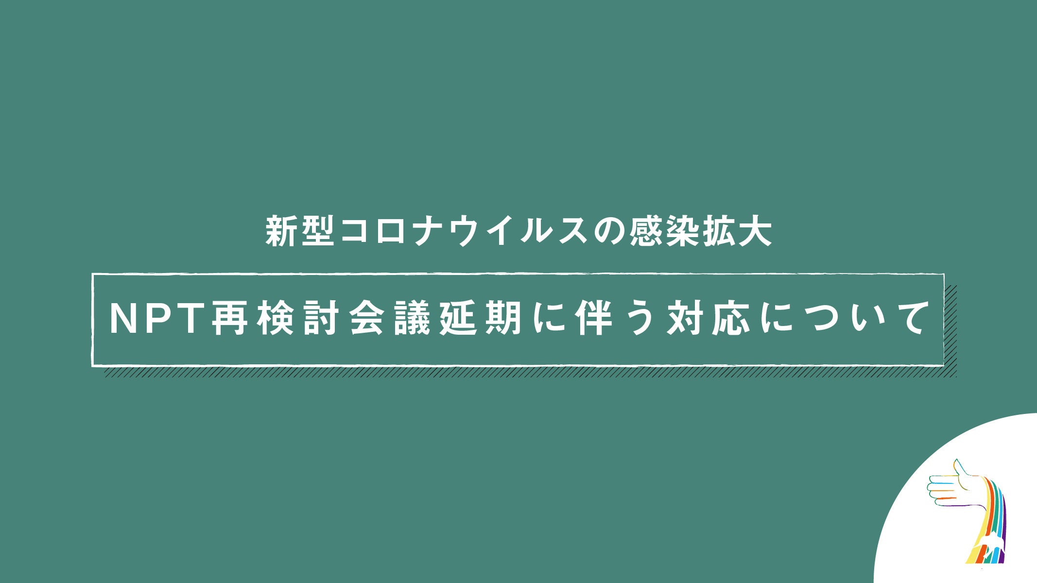 現在、新型コロナウイルスによる感染症が世界中で発生しており、患者数の増加が伝えられています。それに伴い、外務省は3月25日、全世界を対象に危険情報「レベル2(不要不急の渡航は止めてください)」に指定しました。4月27日から開催を予定していたNPT 再検討会議も延期が見通されているため、日本被団協は3月16日、代表団の国連派遣中止を決定しました。