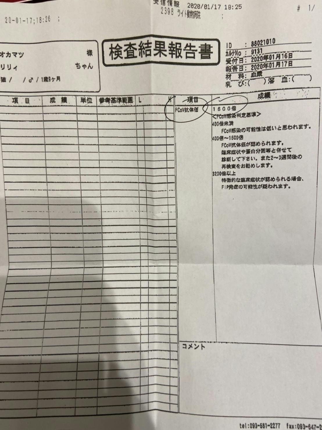 りりぃのFIP診断書について