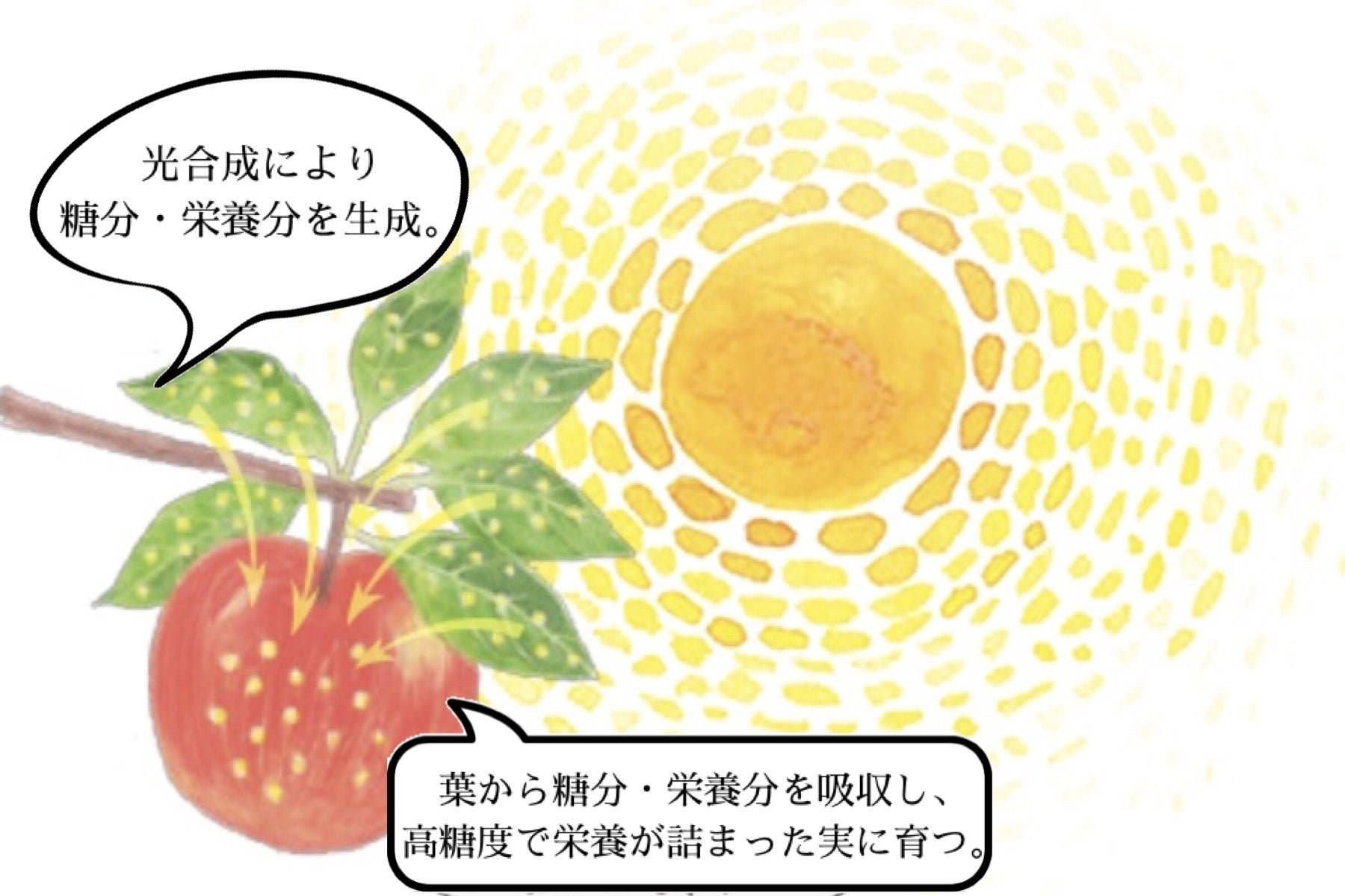 しかし、葉は光合成を行うことで空気中の炭酸ガスを吸収し、果実に糖分や栄養分を運ぶ大切な役割を担っているのです。