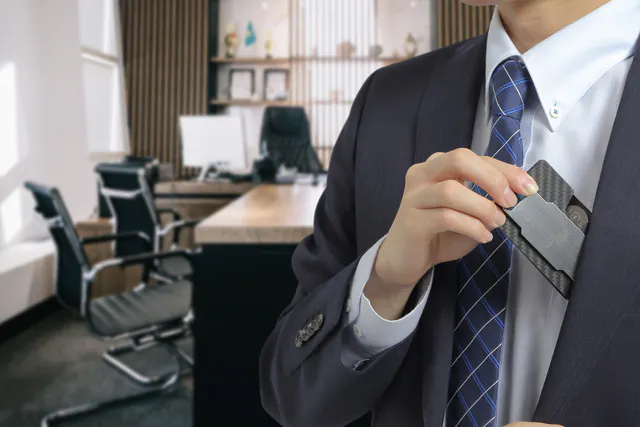 ビジネスシーンで、ミニマムだからスーツに入れても邪魔にならない。