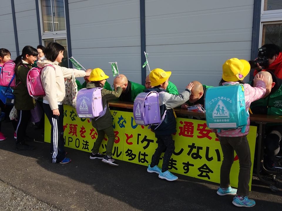 ハゲ頭で願掛け・交通安全運動