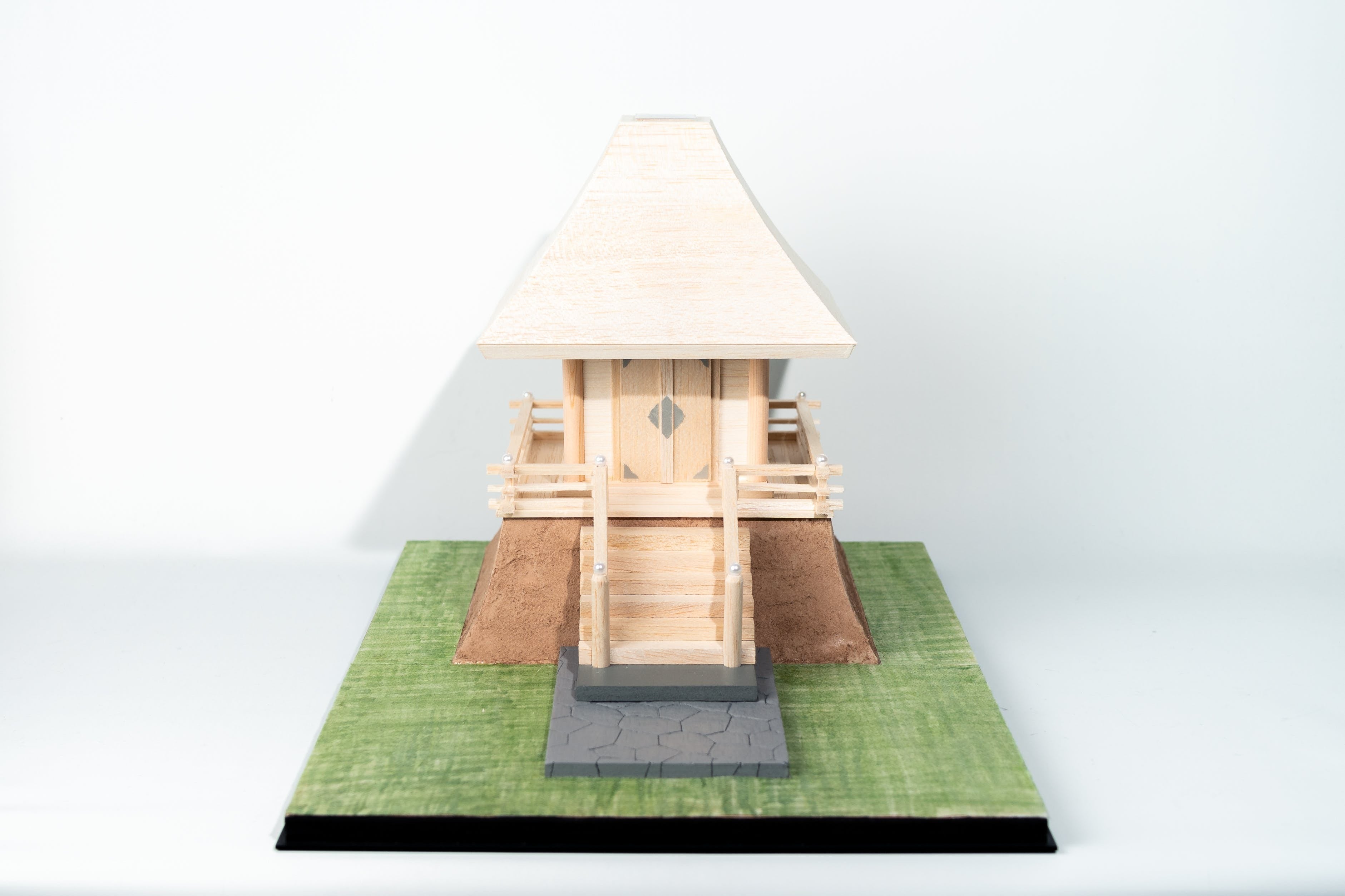 神社計画当初は、神明造りを基本とした格の高い意匠案を検討してましたが、ユーモアな活動からなるハゲ頭の雰囲気から欠け離れており、同じ境内である八幡造りの存在と呼応しながら、シンプルに”ひかり”をテーマにした神社とすることにしました。