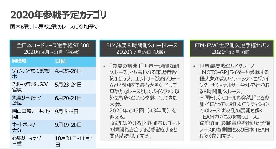 ※上記予算は鈴鹿8耐参戦の資金は含まれておりません。