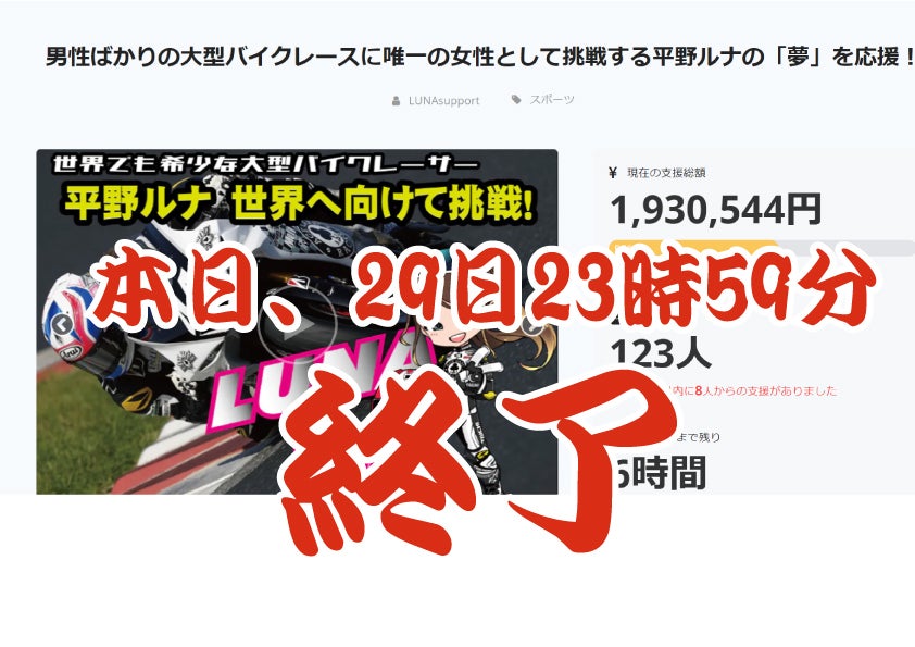 初めまして!今年20歳のバイクレーサー平野ルナと申します!
