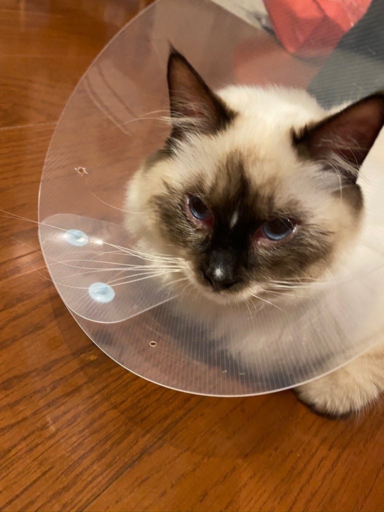 2020/03/06 15:47経過報告3/6すっかり世間は新型コロナウイルスの影響で大変ですね。皆さんは体調など崩されていないでしょうか・・・?飼い主はコロナの影響で忙殺されています・・・。かく言うあんずさんは自分がコロナ(コロナ違い)にやられているにもかかわらずご飯を楽しそうにモリモリモリモリ食べ、ドタバタ走り回り、後ろから襲ってくる位元気になっています。このまま治癒してくれないかと心底願っております。ただ、免疫が下がっているので猫カゼを併発してしまい、目が真っ赤になってしまいしばらくカラー生活を送る事になりました。カラーを付けると、テンションガタ落ち・・・。外した瞬間全力で遊びます・・・。経過は良好ですのでまたご報告させていただきます。 もっと見る