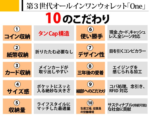 から今回の第3世代、オールインワン財布「One」を開発いたしました。