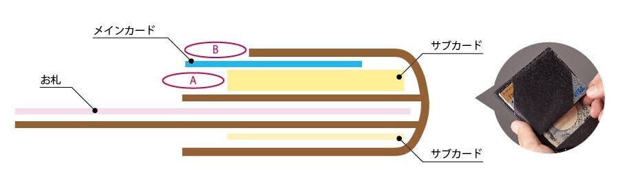 ・普段あまり使わない免許証や銀行のカード等は奥まで押し込む