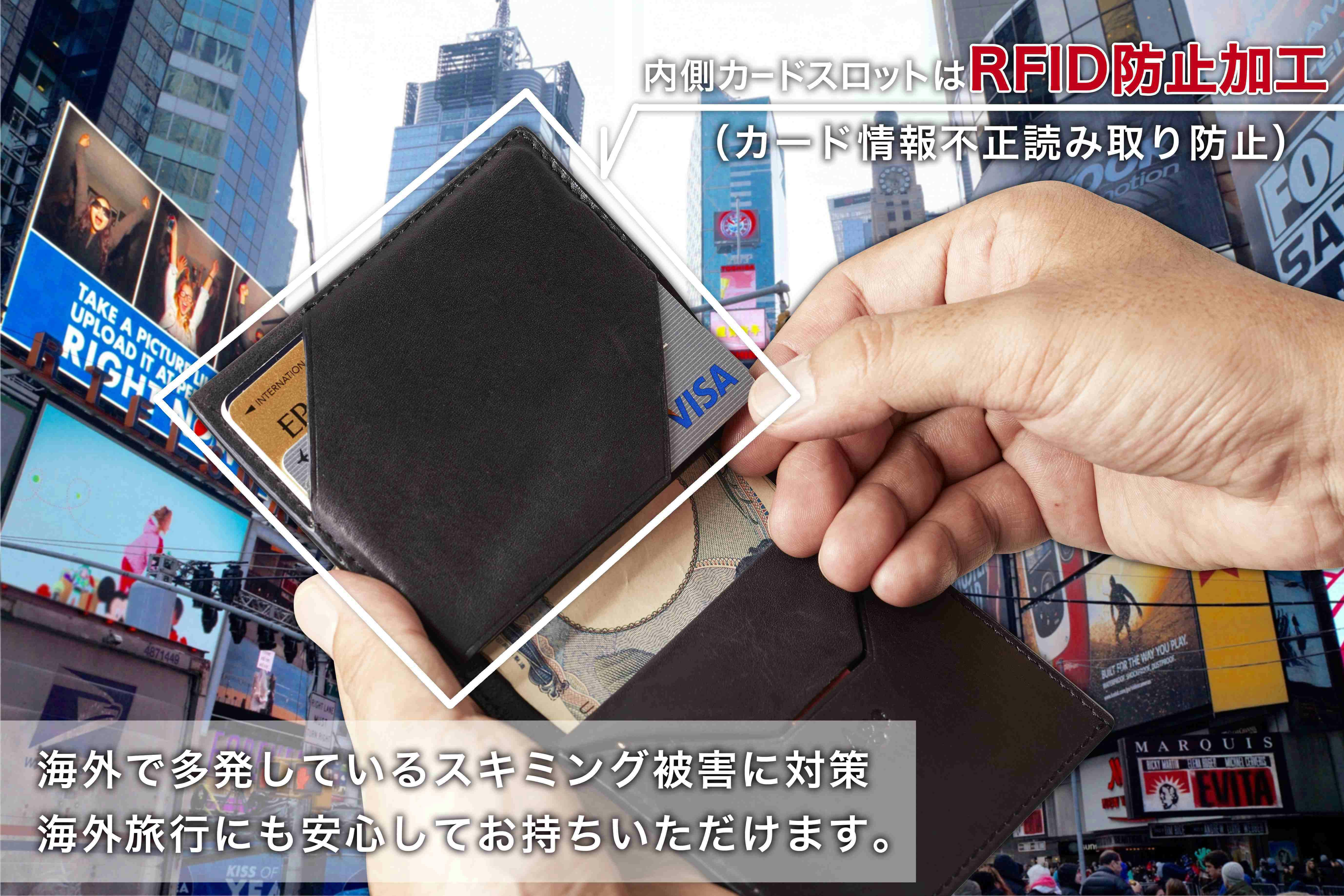 内側カードスロットはRFID防止加工を施しています。