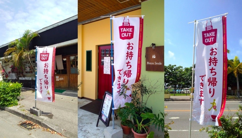 これら飲食店の動きに対し、私たちは石垣島グルメプロモーション協会は、ホームページやSNS上にてテイクアウトを実施している飲食店紹介コーナーの設置や「テイクアウト」のぼり旗の無償配布などの支援をしています。