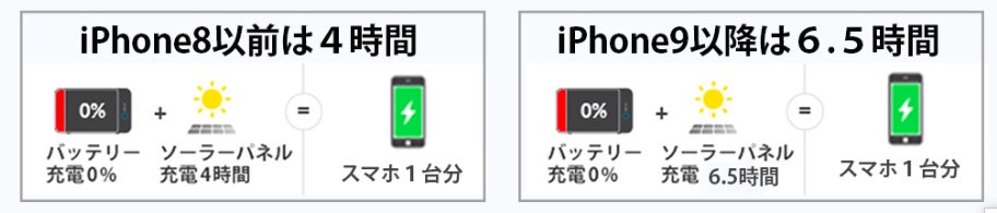 A2. ソーラーバンクの蓄電がMAXの場合、約5回充電できます。(機種によって多少の差はあります)