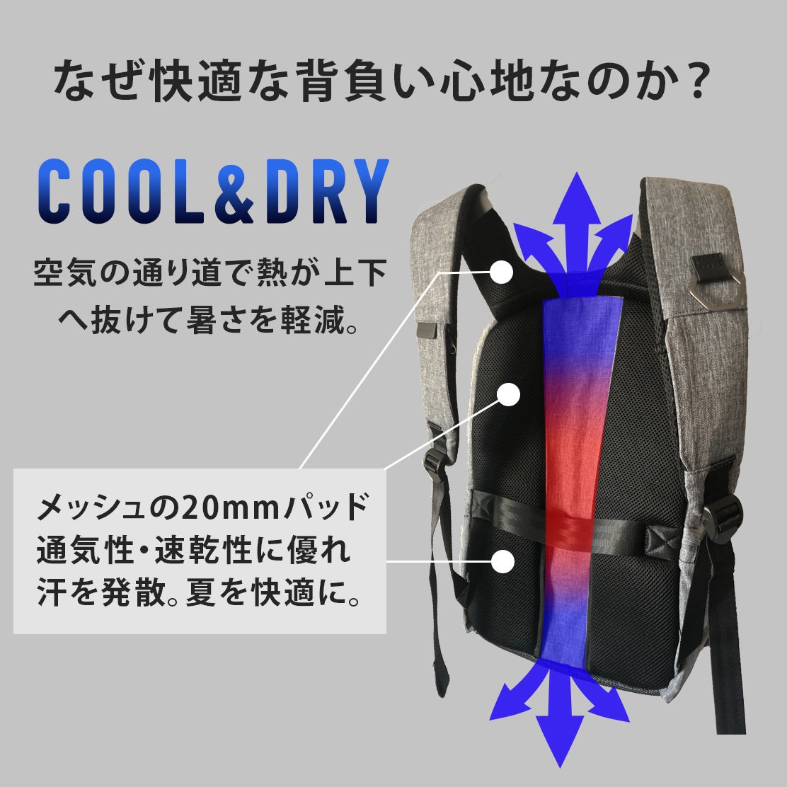 一般的なリュックだと空気の流れが少なく、夏場は背中が汗だくになってしまいがち。
