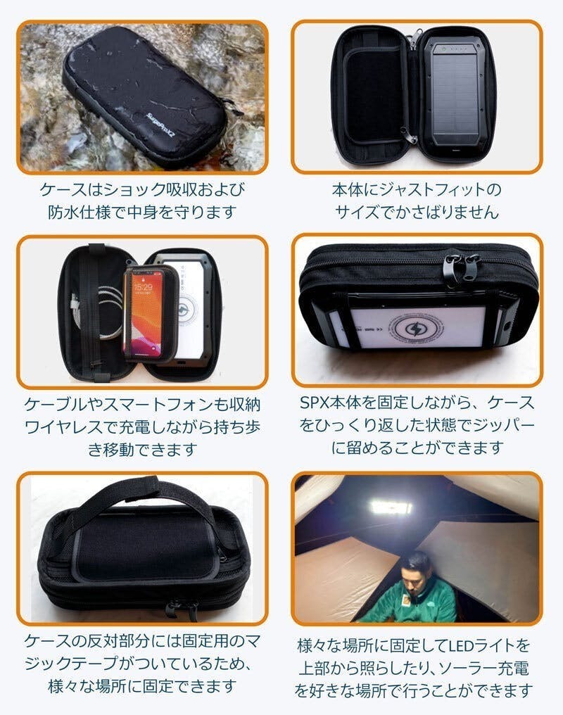 アウトドアとしての利用にも適しています。充電されたSurgeProX2をバックパックに身軽に1台入れておきましょう。山登りやトラッキング、キャンピングにはSurgeProX2が1台があれば充電とライトの使用に十分です。川や雨水にぬれても問題ありませんし、いざという時はソーラー充電も可能です。