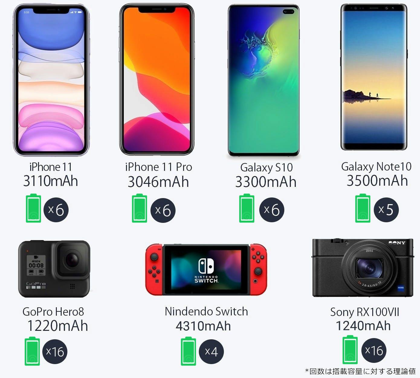 あなたのスマートフォンを6回分も充電ができます*。