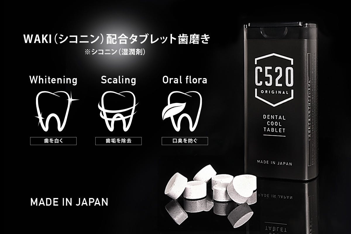 口をすすぐことによって、かみ砕かれたタブレットが歯を研磨し、歯の汚れを落とします。単なる臭い消しではなく、成分の効能と摩擦によって、確かな爽快感が得られます。ブラッシングともまた違う錠剤のカケラによる歯への刺激も新しい感触で、クセになります。