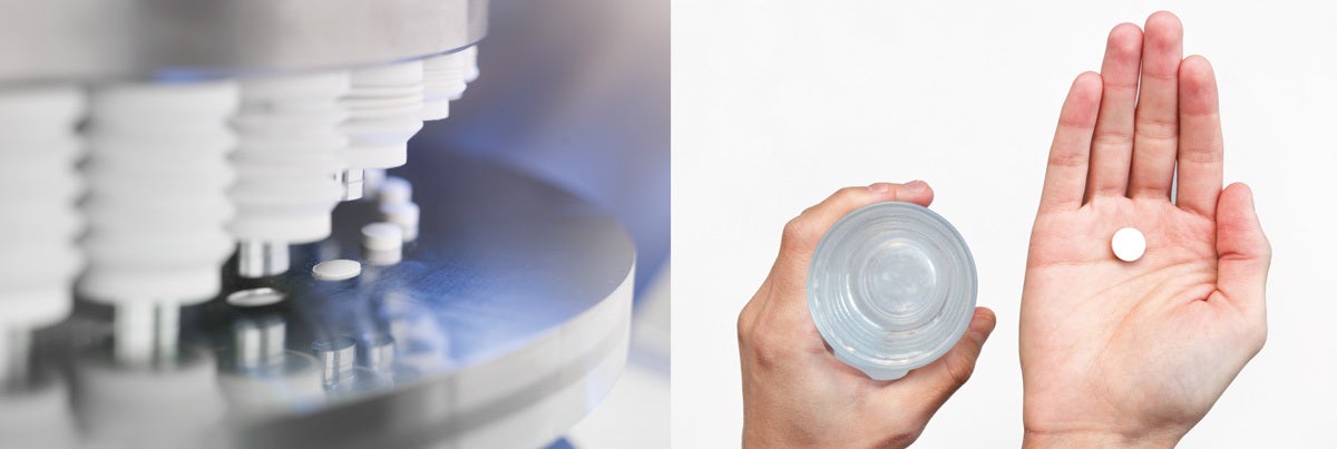 ①「手のひらにタブレットを一粒とりだす」