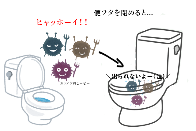 水を流した際に飛び散ると言われているウイルスが飛びにくくなります。
