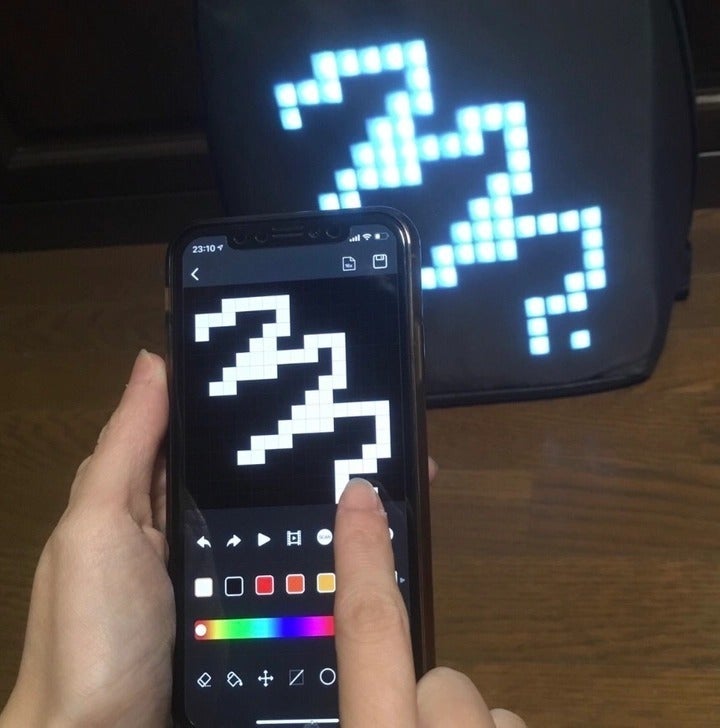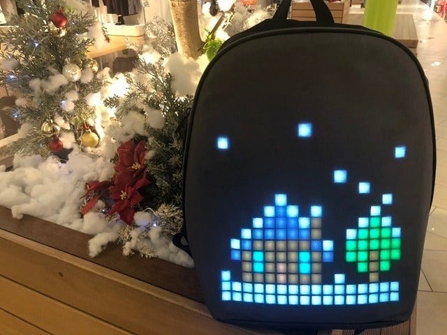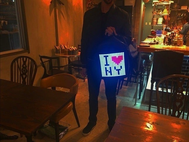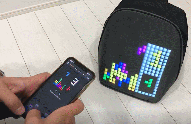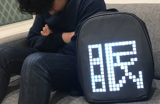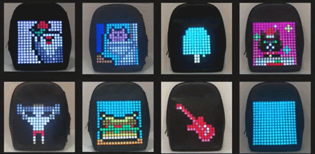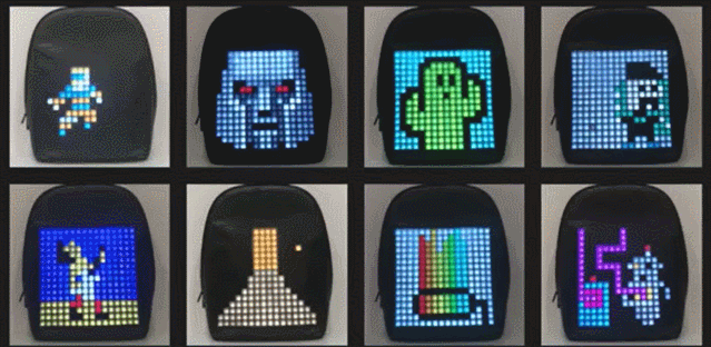 これらの素晴らしい提案の中の一つが、弊社のピクセルアートLEDパネル付きのバックパックでした。