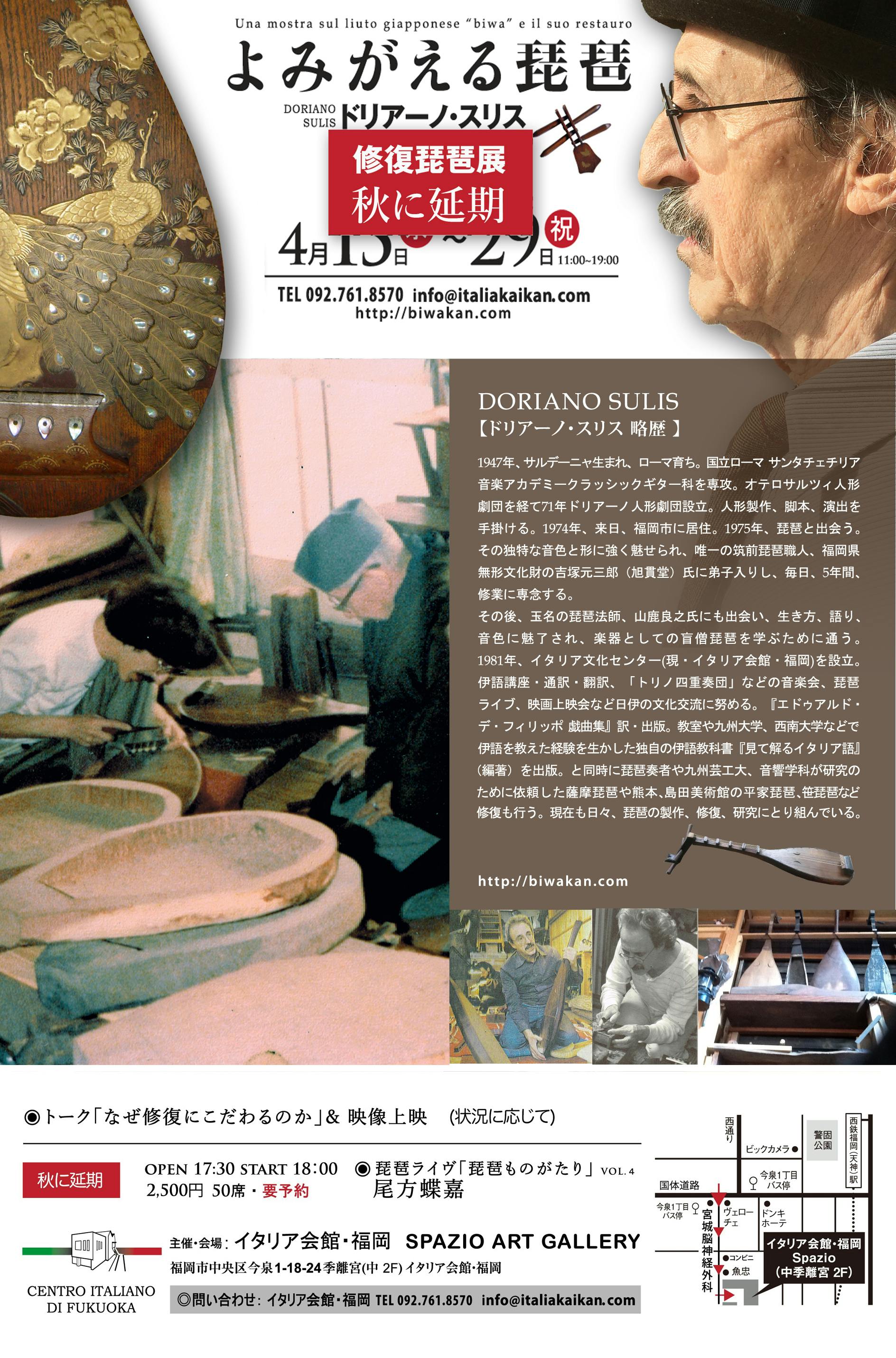 秋中 福岡にて「よみがえる琵琶 ドリアーノ・スリス修復琵琶展」開催予定