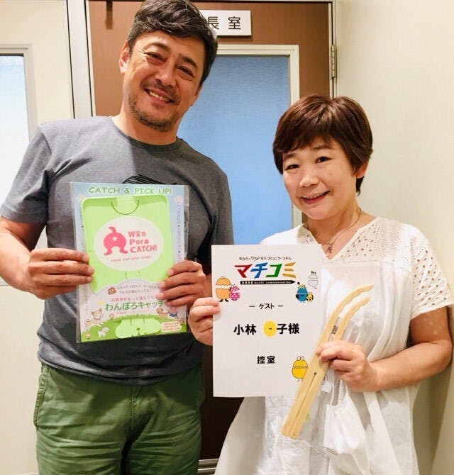 2020/07/02 14:587月1日(水) 水曜日 16:30~テレビ埼玉 「マチコミ」に無事?出演することができました。あやしい「発明おばさん」全開で!?臨みましたっ!!生放送だったので、MCのデビット伊東さんの質問(ツッコミ?)にうまく対応できず(´;ω;`)変な回答をしてしまった!と反省もあり、、、素人おばさんにつき、ご勘弁。。。収録後、記念撮影に応じてくださったデビット伊東さん。ワンコを3匹飼っているそうで、ご自身がお散歩しているときにワンコがもよおしてしまい、なんと「素手でダイレクトキャッチ」したことがあるそうです!愛犬家の鏡ですね!せひ、これからはわんぽろキャッチがお役に立てれば幸いです(´-`*) もっと見る