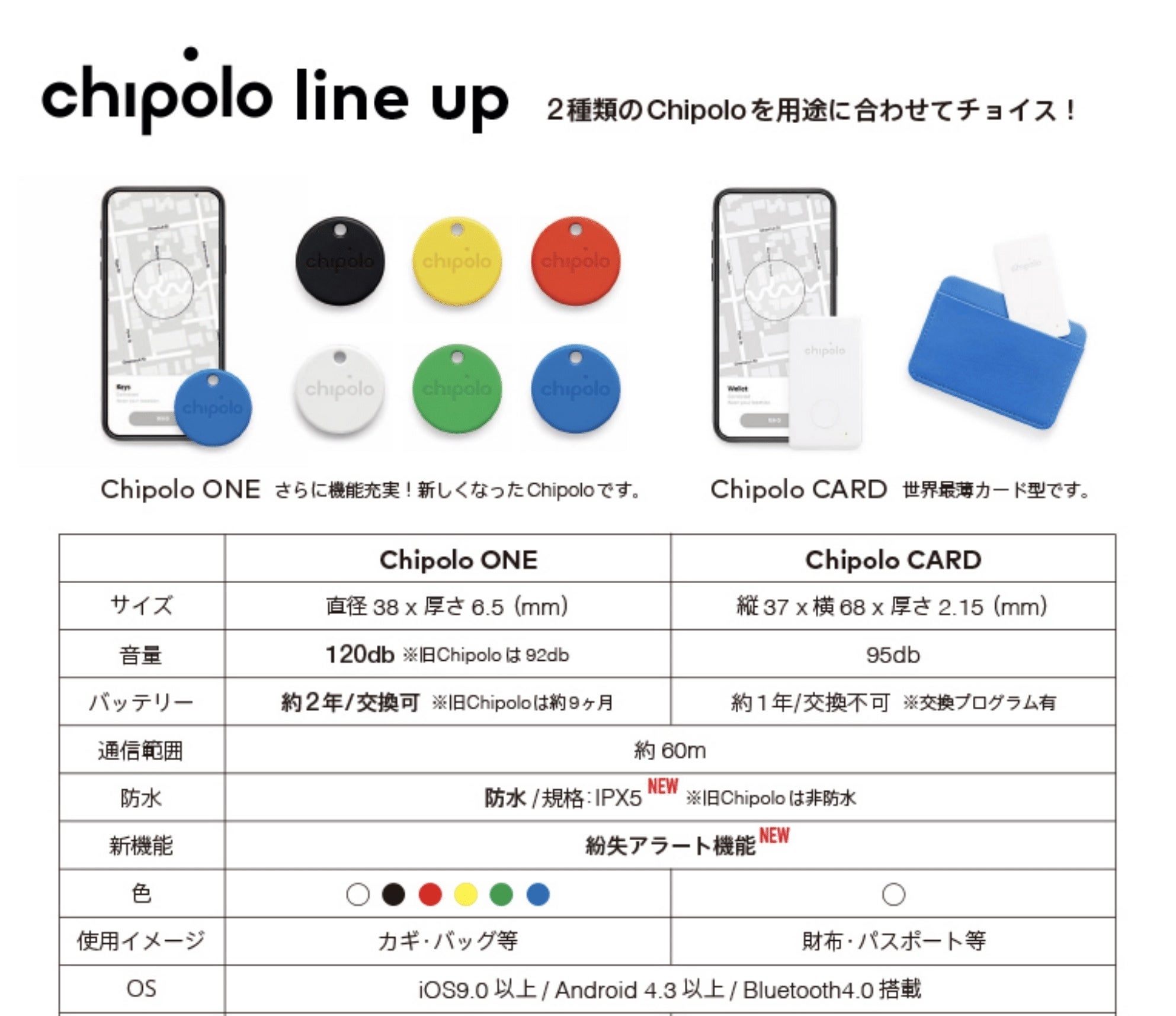 Chipoloがあればもう安心、オシャレなデザインでカラー展開も豊富なので、さまざまなアイテムにマッチしてくれます。