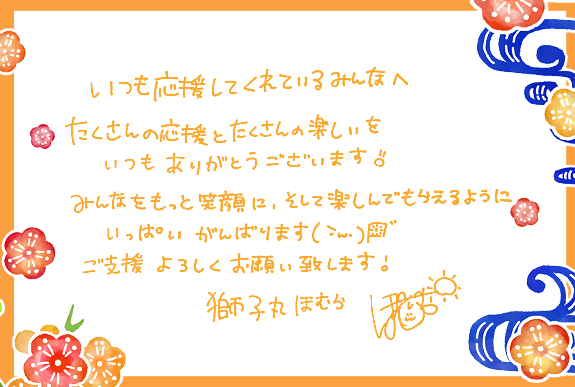 4月下旬頃:根間うい、獅子丸ほむら、獅子丸しずく、ししごんから心を込めたお礼の手書きメッセージ(画像データ)をメールにてお送りします。