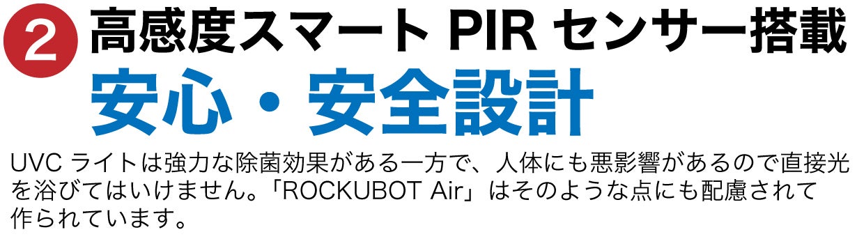 基本的には無人空間で使って頂くことをおすすめしますが、万が一、人やペットが近づいても自動で停止するので、安心して利用することができます。