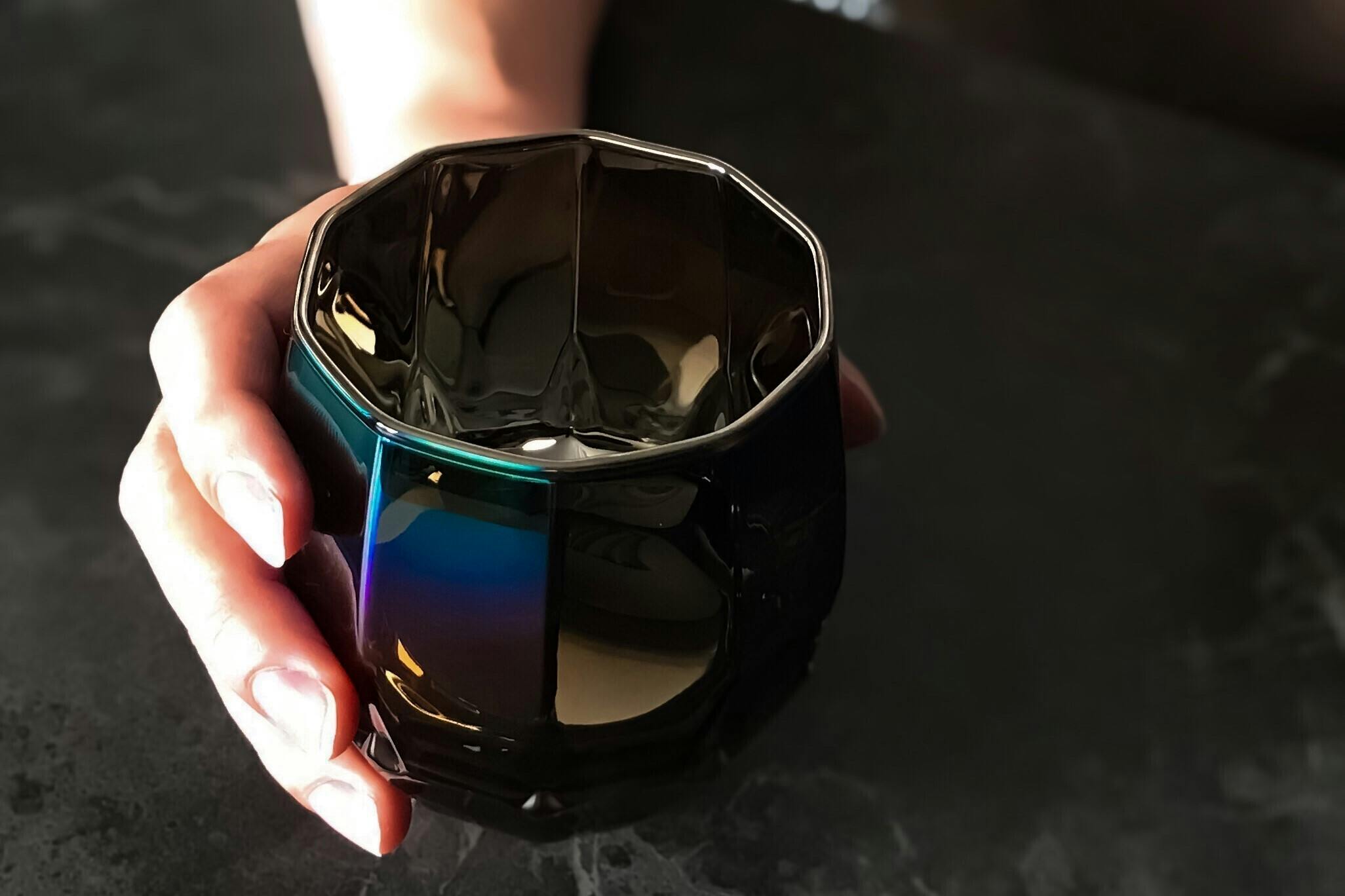 ある日、妖艶なその輝きをみた、ひとりの社員のこころが動き出します。試験片に施されたチタン膜と、光が合わさることで生まれたその輝き。それを目にした時の幸福感は、美味しいワインに出会った時と同じと感じ、グラスを作る発想に至ります。