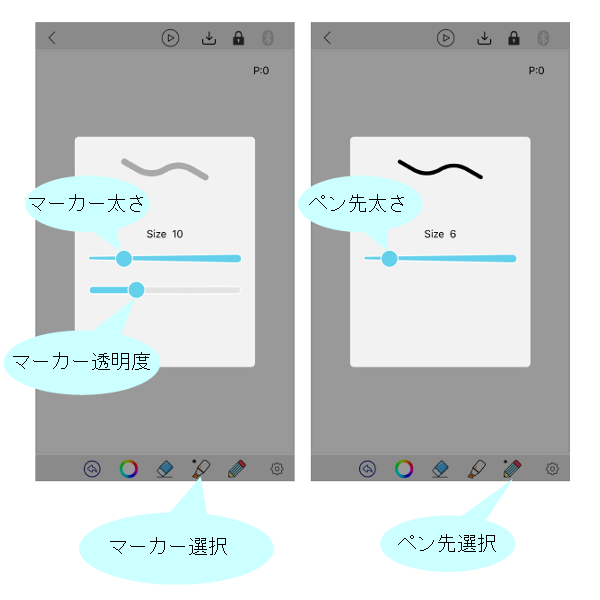 ・専用アプリからだけでなく、手元でも線の太さを調整出来ます。