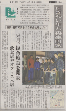 4月19日(水)岩手日報朝刊の「まちかどビジネス」のコーナーに記事が掲載されました。