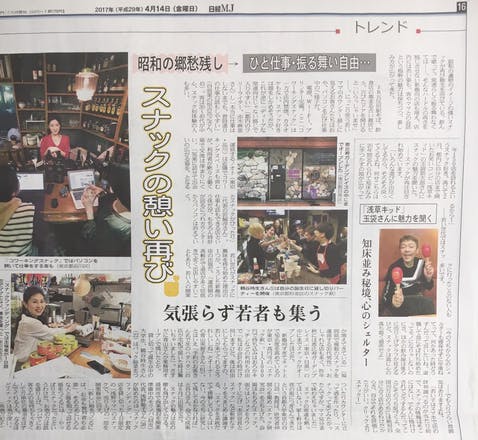 日経MJに東京でのスナックファンディングについての記事が掲載されました。