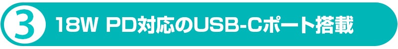 USB-C出力 : PD 5V-3A/9V-2A/12V-1.5A(最大18W)