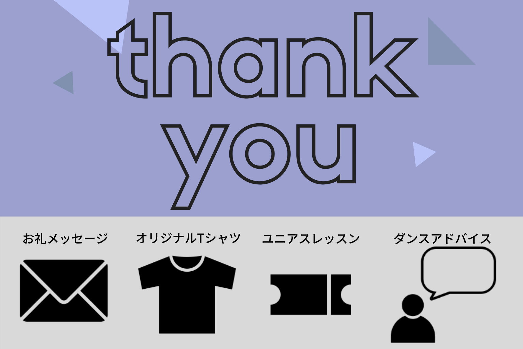 ダンサーを支えるためのクラウドファンディングにはなりますが、ダンス経験未経験問わず、この機会に是非多くの方にダンスをしてもらい、ダンスの素晴らしさに触れて頂けたらと強く思っています。