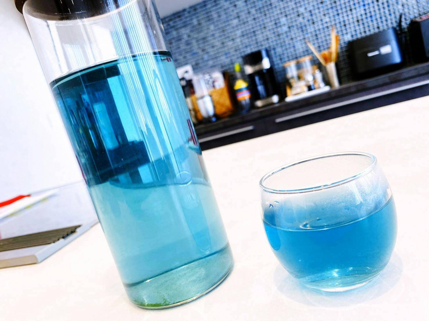 このお茶は、レモン果汁やビネガー(甘めのものがオススメ)を少量入れることで水の色が青色からピンク色に変化します。飲み口を変える意味でも面白いお茶です。