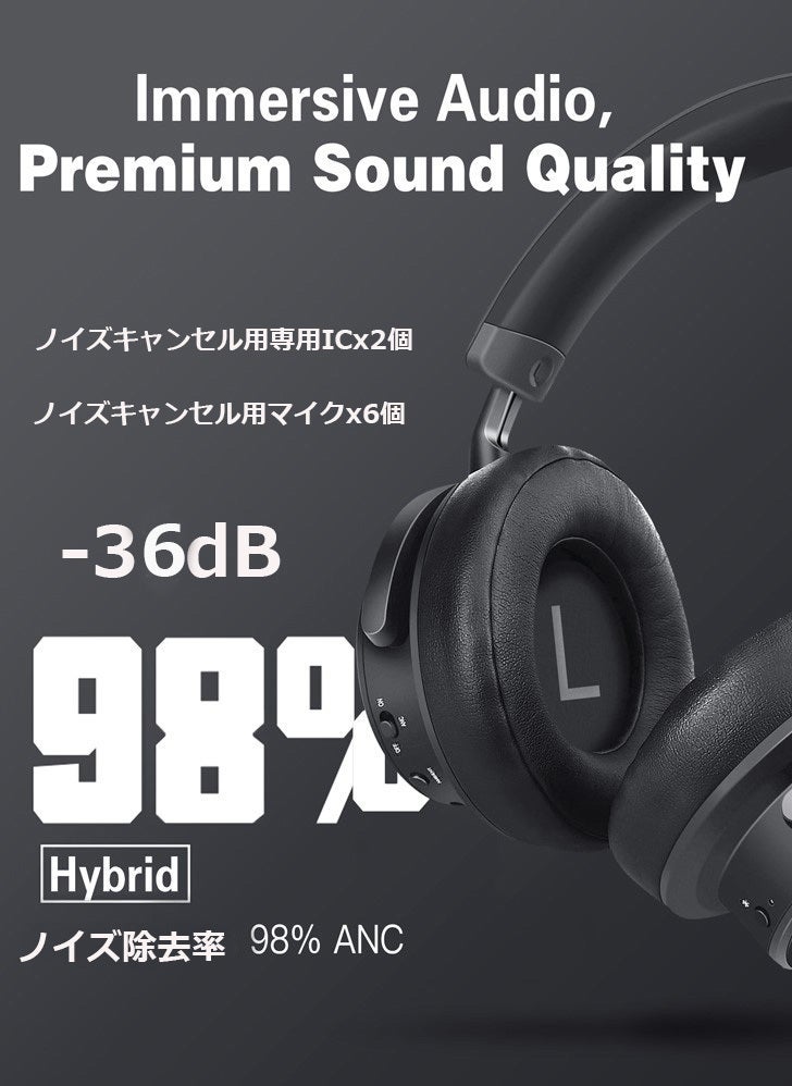 -36dB(98%)のノイズキャンセリングを達成した驚異の高性能ヘッドフォンになります。