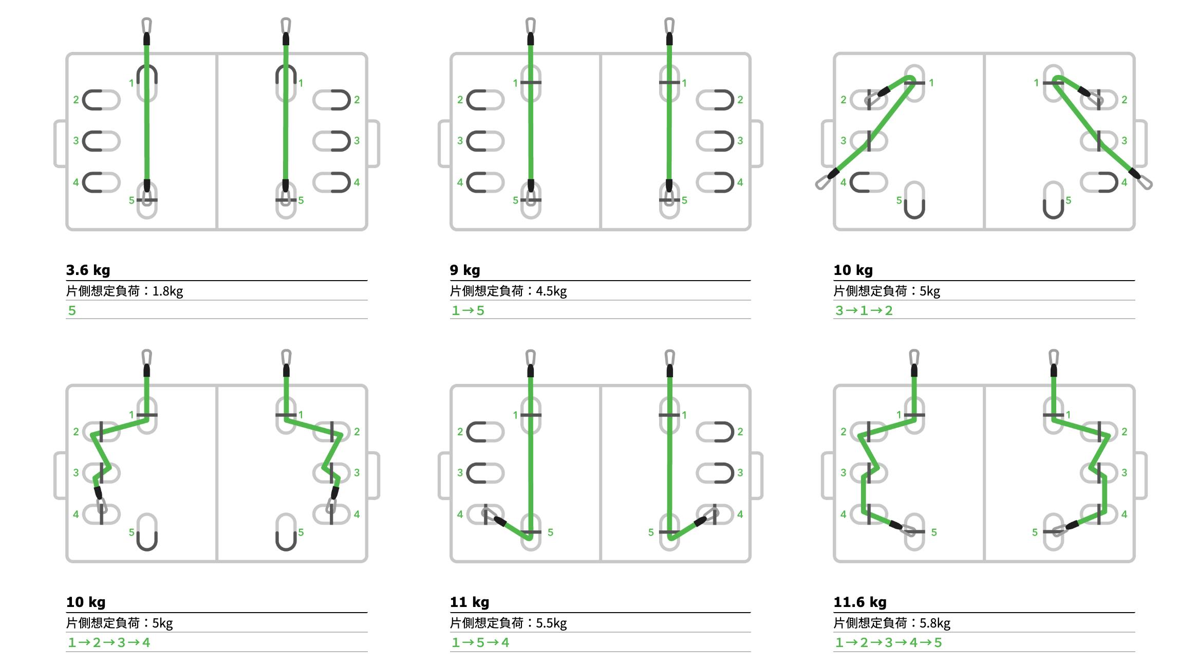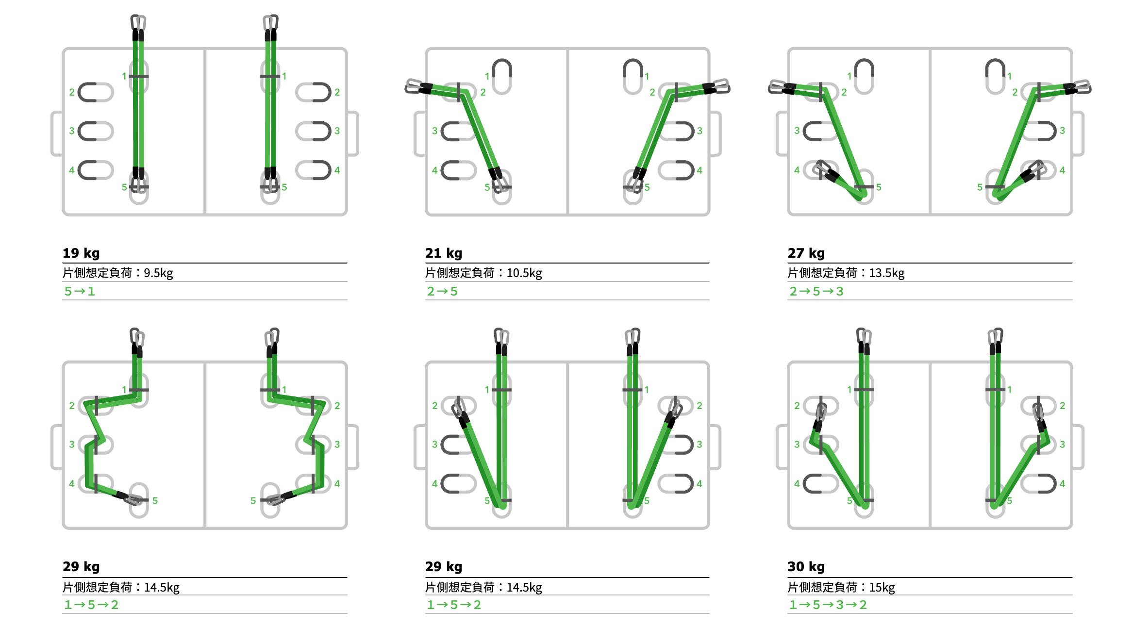 ※負荷バンドを別のリングに通し、バンドの長さを調節することで負荷調節ができます。
