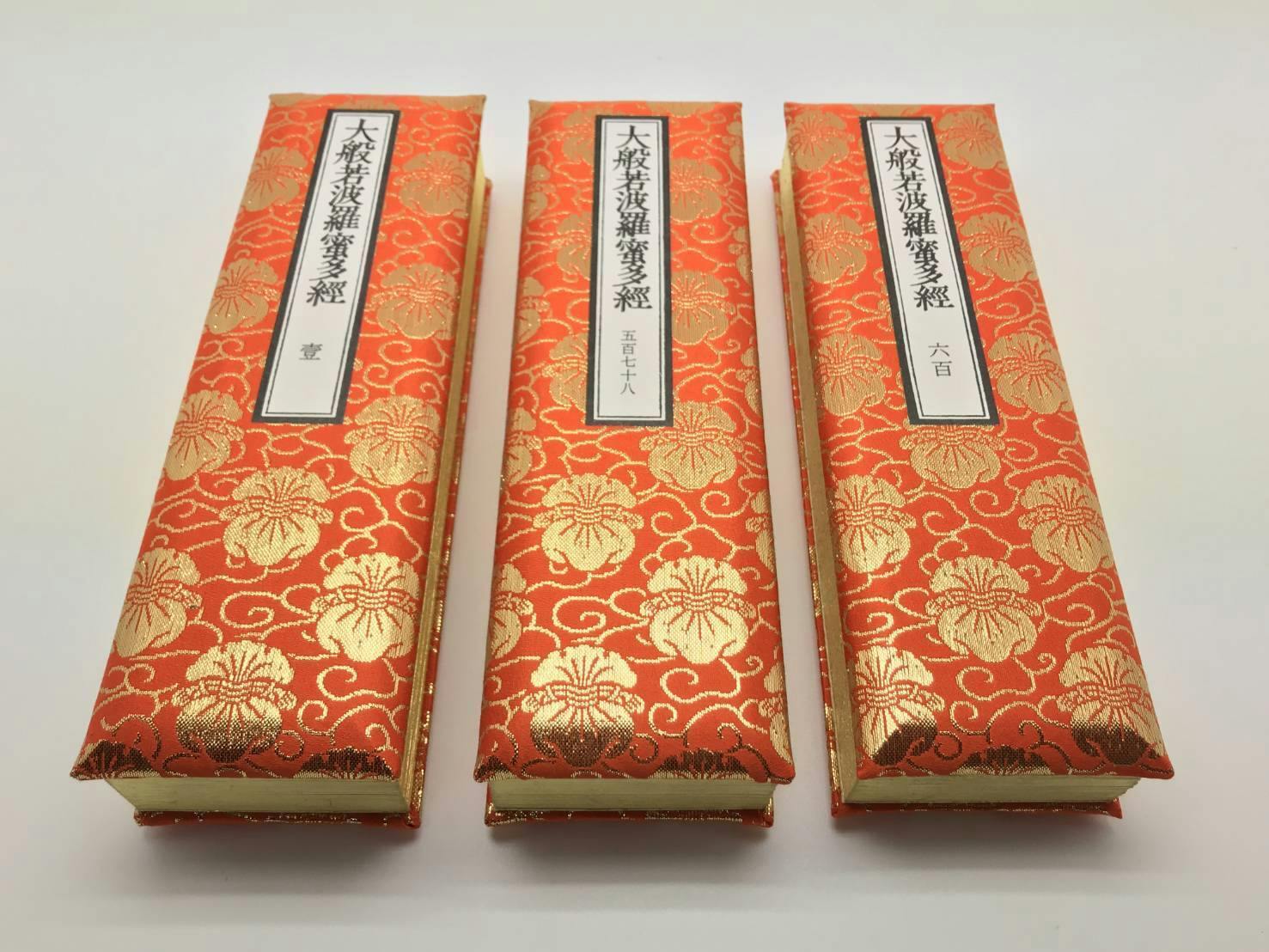 全国でも稀な木版刷りの「大聖歓喜天」宝袋紋に誂えた大般若経典600巻にしたいため、一般的な大般若経に比べて高額な費用が必要になります。