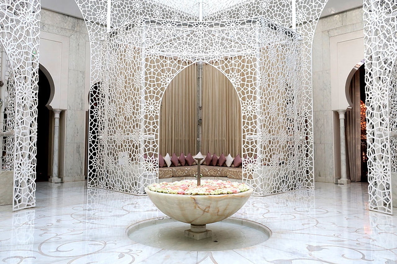モロッコ王室がオープンした豪華絢爛なホテル「ロイヤル・マンスール」、アトラス山脈の眺望、約10万本のバラ、ブーゲンビリアやオリーブの木の香りに包まれ美しく整備された約20万㎡の広大な庭園の中に佇む「マンダリン オリエンタル マラケシュ」ではモロッコ文化の影響を受けたトリートメントが提供されている。
