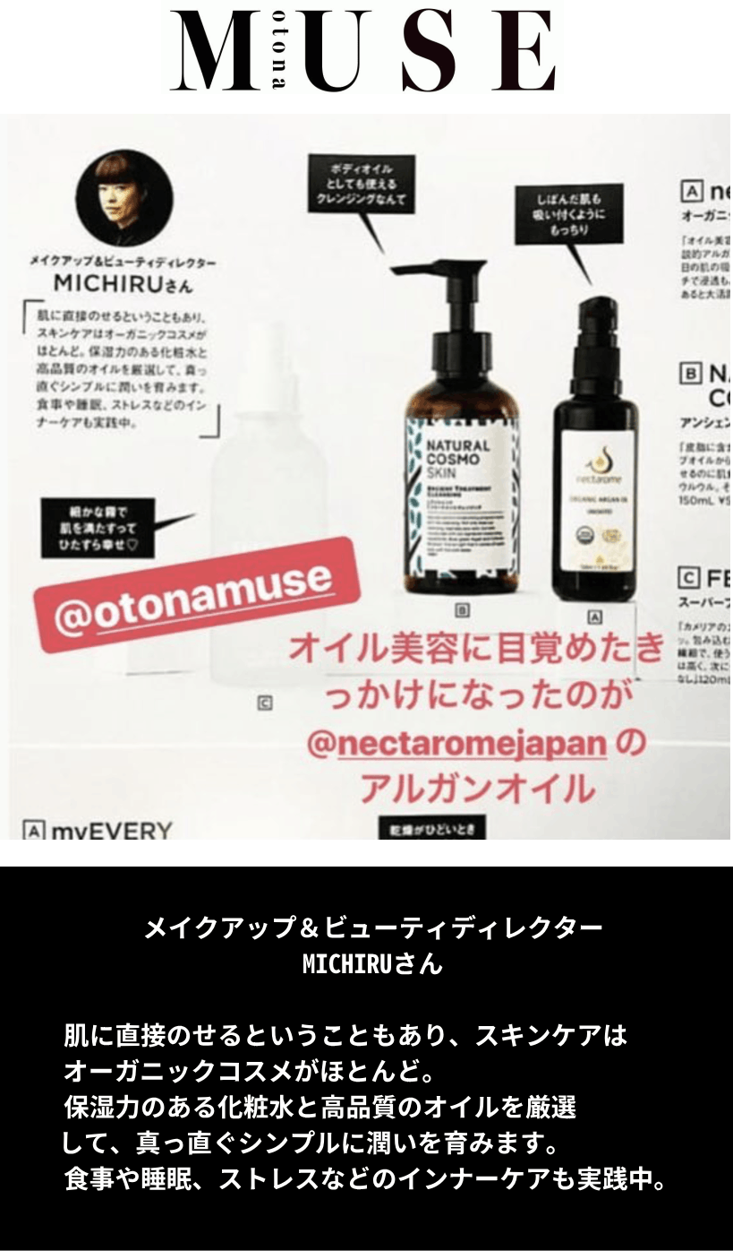 モロッコ王室が経営する「ロイヤル・マンスール」や、「マンダリン・オリエンタルホテル」などの五つ星ホテルのVIPスパで、Nectarome(ネクタローム)が開発したアルガンオイルコスメが使用されています。
