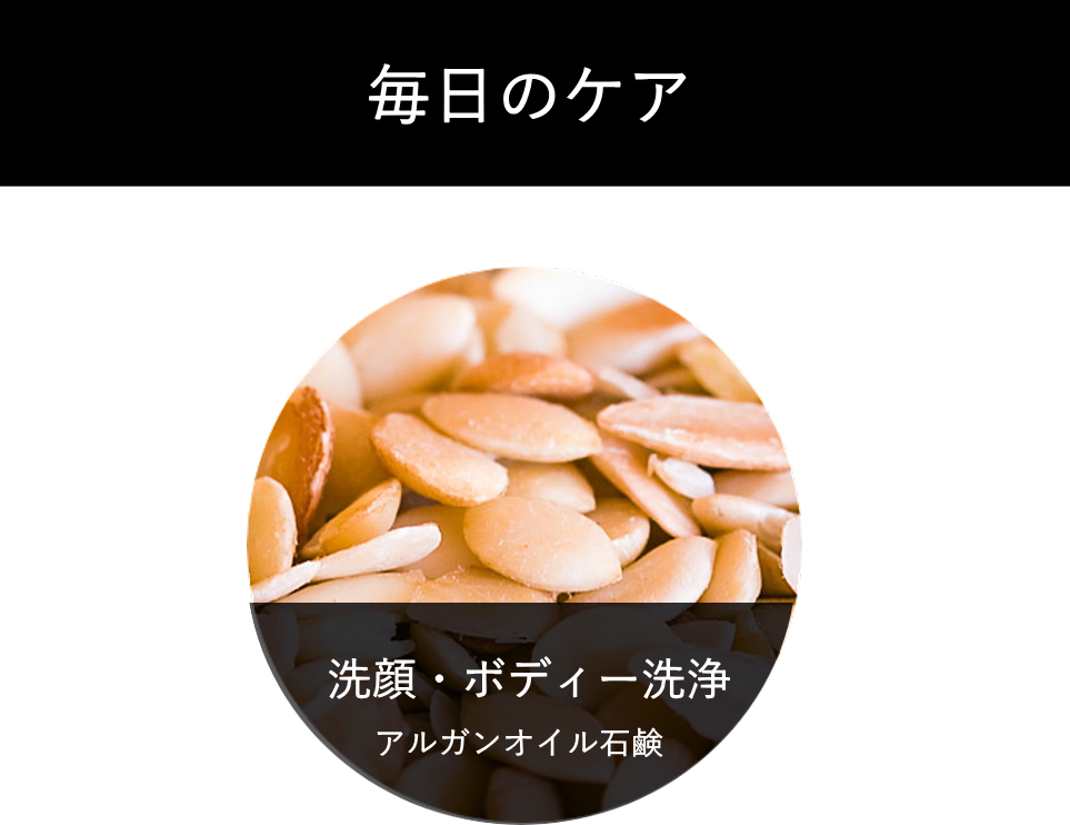 25000年の年月を生き抜いたアルガン樹は、モロッコ南西部にのみ生殖しています。アルガンの実は2年に1度しか実りません。1本のアルガン樹でおよそ30キロの実が取れますが、たった1リットルのアルガンオイルしか抽出できません。アルガン樹は1998年、ユネスコ世界文化遺産に指定されました。豊富なビタミンEとオレイン酸が含まれ、美容だけでなく食用としても注目されています。