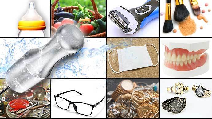 衣類、貴金属、時計、食器、メガネ、果物、野菜、哺乳瓶、入れ歯、メイク道具、などなど